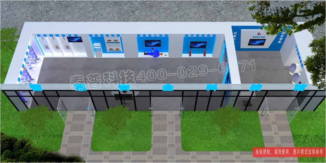 此安全体验馆方案由五个集装箱房组成;VR体验区由两个集装箱房组成;室外实体安全体验区为长10米,宽10米的标准场地。室内实体安全体验区和室外实体安全体验区共设置10个建筑安全相关的体验项目,如安全帽撞击体验、综合用电体验、电子消防体验、现场急救体验、安全带体验等等,可供多人同时体验。以实景模拟、仿真体验、案例警示、亲身体验等直观方式,将施工现场的危险源、危险行为与事故类型具体化、实物化,让体验人员通过视觉、听觉、触觉来体验施工现场危险行为的发生过程和后果,感受事故发生瞬间的体验,从而提高安全意识、增强自我保护意识、避免事故的发生。